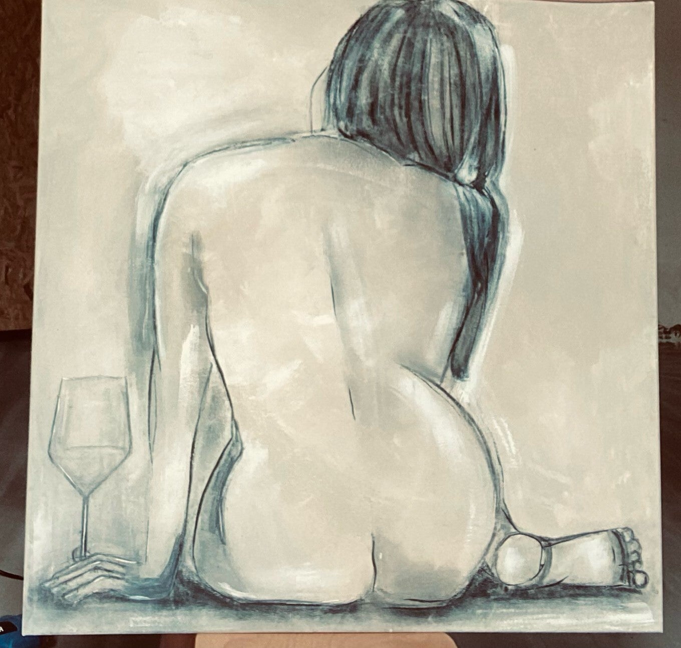 Dit kunstwerk in sobere tinten is op een 3D (extra dik doek waardoor ze ook zonder lijst mooi hangt) geschilderd met een combinatie van houtskool en acrylverf.